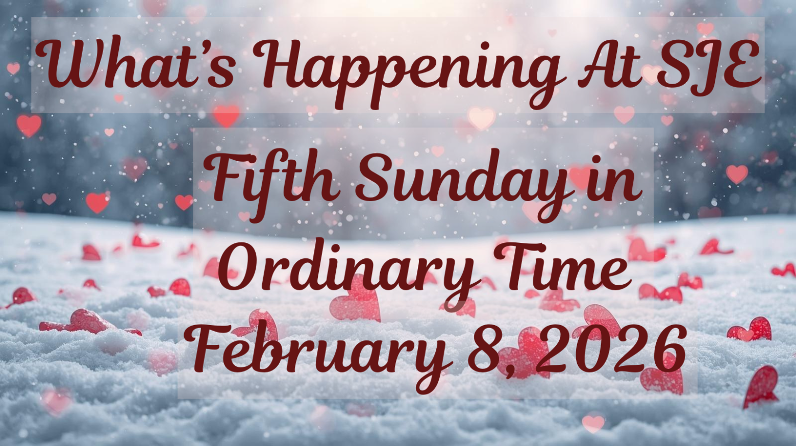 Ash Wednesday Masses will be at 8:00 a.m., Noon, and at 6:30 p.m. on February 18. The 8:00 a.m. and Noon Masses will also be live-streamed for those unable to attend in person.